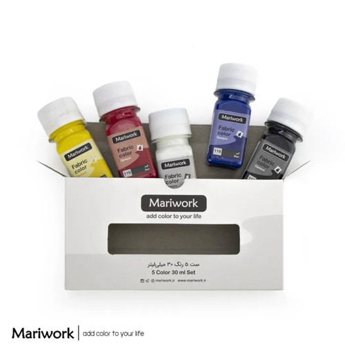 رنگ پارچه | ست 5 رنگ 30 میل | شامل رنگ های اصلی + سیاه، سفید